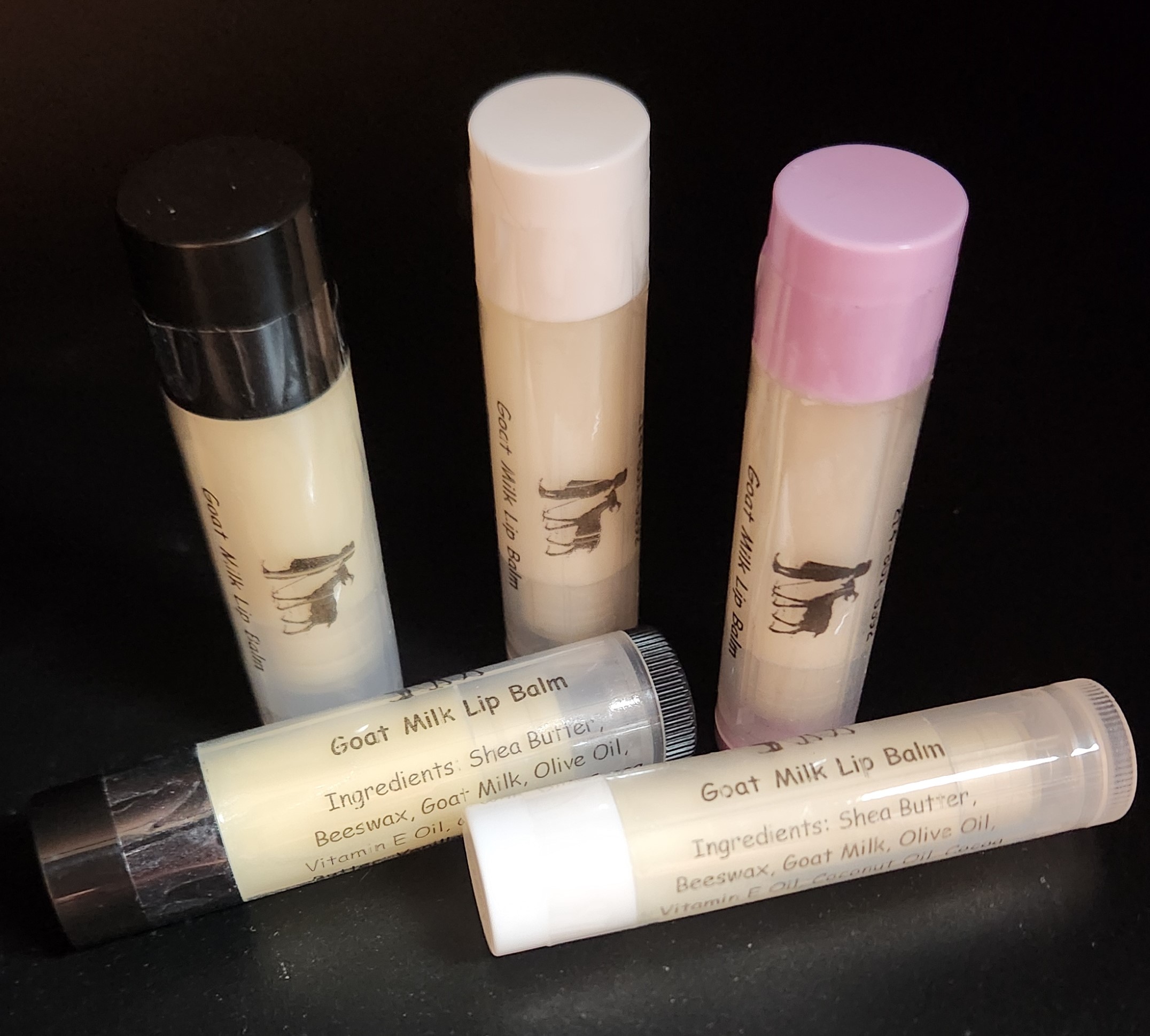 Ingredients: Goat Milk Powder, Shea Butter, Olive Oil, Vitamin E Oil, Coconut Oil, Cocoa Butter, Beeswax, Food Grade Natural Flavoring